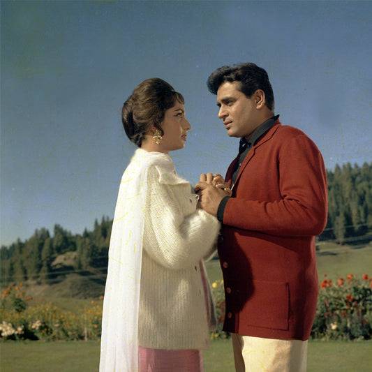Rajendra Kumar and Sadhana in a Romantic Portrait- still from the movie “ARZOO” Personal Bollywood Photography of renowned cinematographer, Shri Prem Sagar.