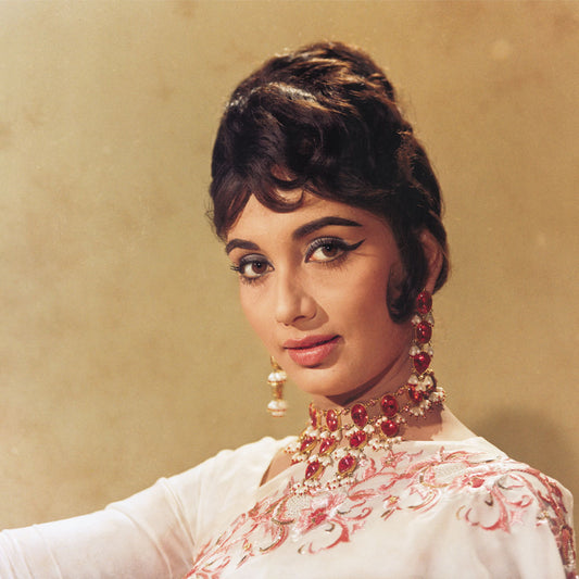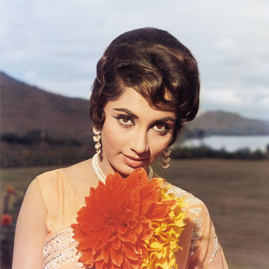 Sadhana Portrait in a Peach Sari - still from the movie “ARZOO” Personal Bollywood Photography of renowned cinematographer, Shri Prem Sagar.