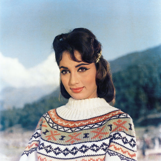 Sadhana Portrait in a white Sweater- still from the movie “ARZOO” Personal Bollywood Photography of renowned cinematographer, Shri Prem Sagar.