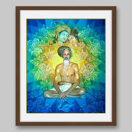 Kathia baba with radha krishna and mandala behind - High Quality Print of Artwork by Pieter Weltevrede