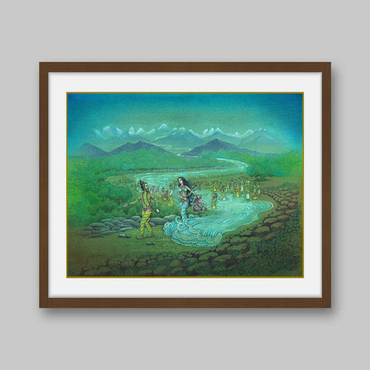 Bhagirath directing the flow of Ganga on earth – High Quality Print of Artwork by Pieter Weltevrede