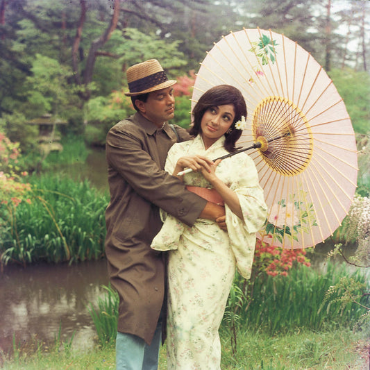 Dharmendra and Mala Sinha in a Japanese Dress Portrait - still from the movie “ANKHEN” Personal Bollywood Photography of renowned cinematographer, Shri Prem Sagar.