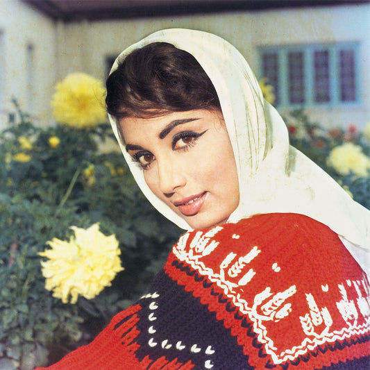 Sadhana Portrait in a white Sweater- still from the movie “ARZOO” Personal Bollywood Photography of renowned cinematographer, Shri Prem Sagar.