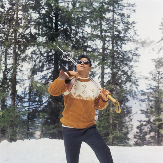 Rajendra Kumar in a Ice Skating in the valley of Kashmir Portrait - still from the movie “ARZOO” Personal Bollywood Photography of renowned cinematographer, Shri Prem Sagar.