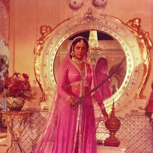 Hema Malini in a Pink Princess attire Portrait - still from the movie , "BAGHAVAT" Personal Bollywood Photography of renowned cinematographer, Shri Prem Sagar.