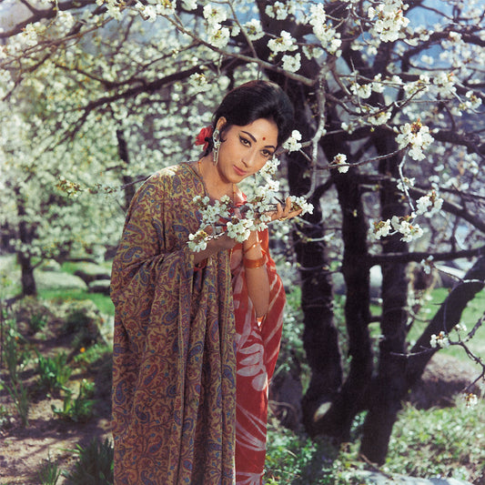 Sadhana Portrait in a Peach Sari - still from the movie “ARZOO” Personal Bollywood Photography of renowned cinematographer, Shri Prem Sagar.