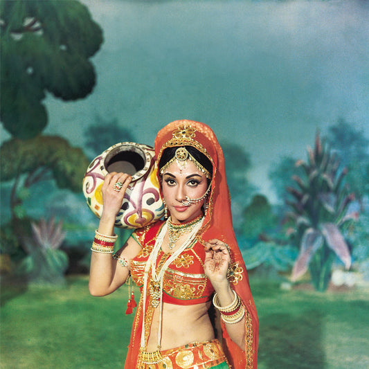 Mala Sinha in a Red and Green Lehenga Portrait - still from the movie, “GEET” Personal Bollywood Photography of renowned cinematographer, Shri Prem Sagar.