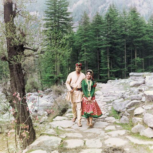 Mala Sinha and Rajendra Kumar in a typical Pahadi dress Portrait - still from the movie, “GEET” Personal Bollywood Photography of renowned cinematographer, Shri Prem Sagar.
