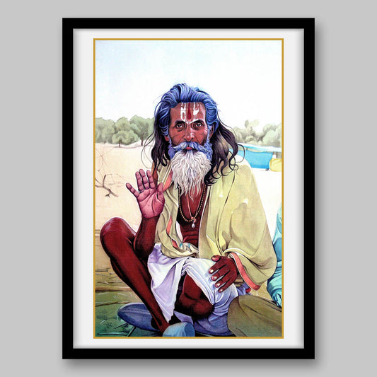 Sadhu Sitting in Lotus Pose - High Quality Print of Artwork by Pieter Weltevrede
