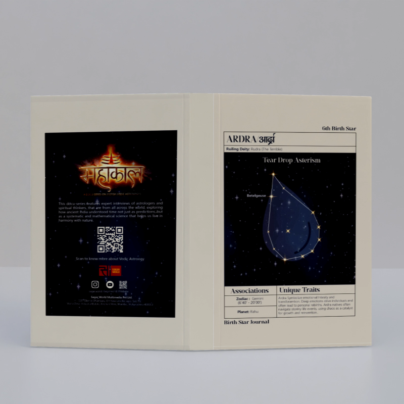 Discover the power of Vedic astrology with the Ardra Nakshatra Journal, a 365-day guided journal designed to help you align your daily life with the wisdom of the Nakshatras. Based on the Ardra Nakshatra, the sixth of the 27 lunar constellations in Vedic astrology, this journal encourages self-awareness, reflection, and mindful planning throughout the year.