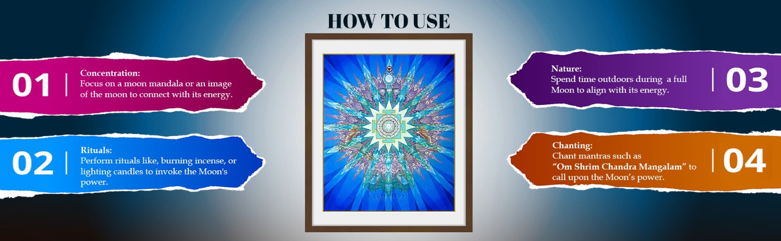 Moon Yantra is a sacred geometrical diagram to invoke and seek blessings from Moon God, Chandra, enhancing relationships, peace, harmony, and mental health.