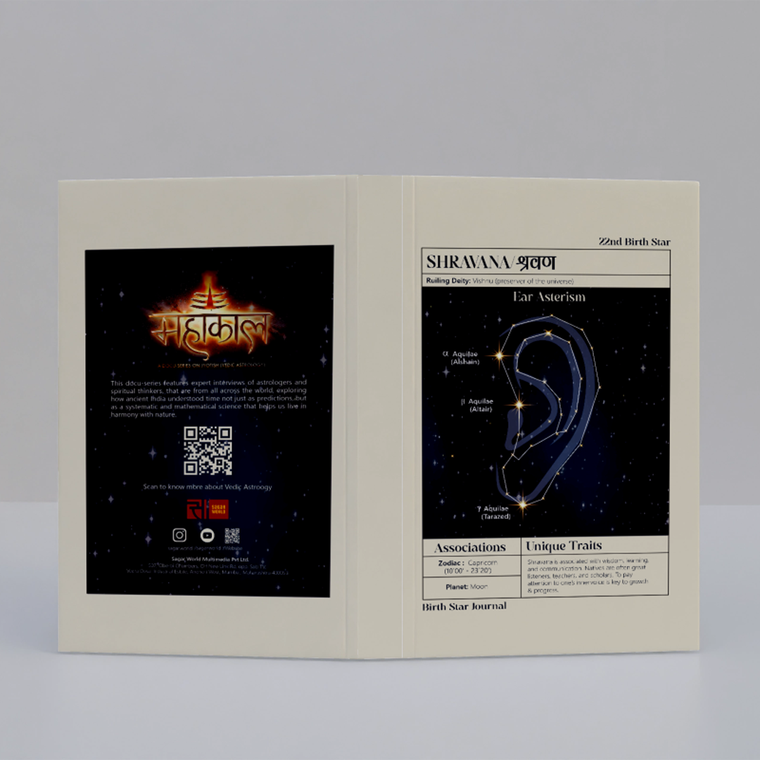 Discover the power of Vedic astrology with the Shravana Journal, a 365-day guided journal designed to help you align your daily life with the wisdom of the Nakshatras. Based on the Shravana Nakshatra, the twenty-two of the 27 lunar constellations in Vedic astrology, this journal encourages self-awareness, reflection, and mindful planning throughout the year.