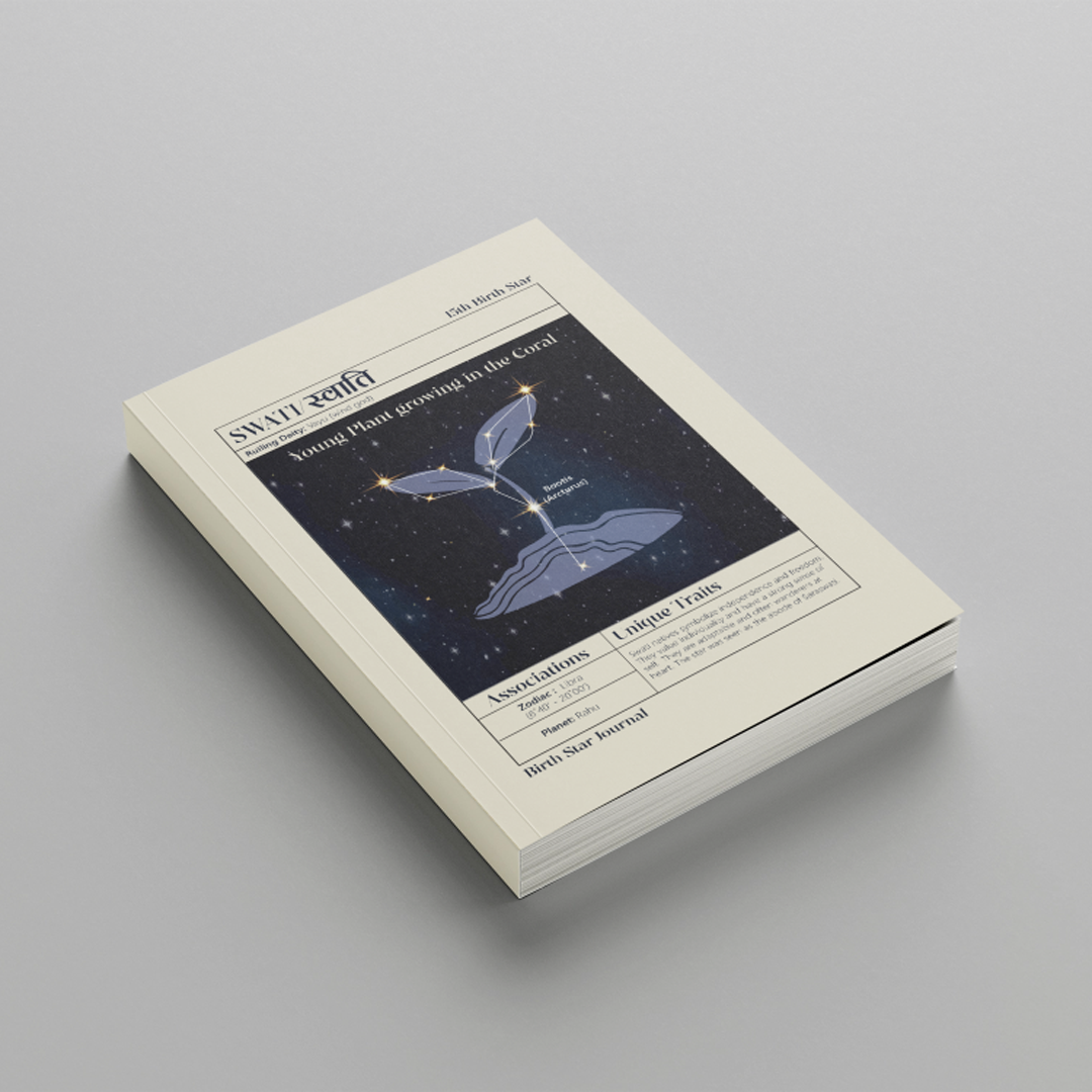 Discover the power of Vedic astrology with the Swati Journal, a 365-day guided journal designed to help you align your daily life with the wisdom of the Nakshatras. Based on the Swati Nakshatra, the fifteenth of the 27 lunar constellations in Vedic astrology, this journal encourages self-awareness, reflection, and mindful planning throughout the year.